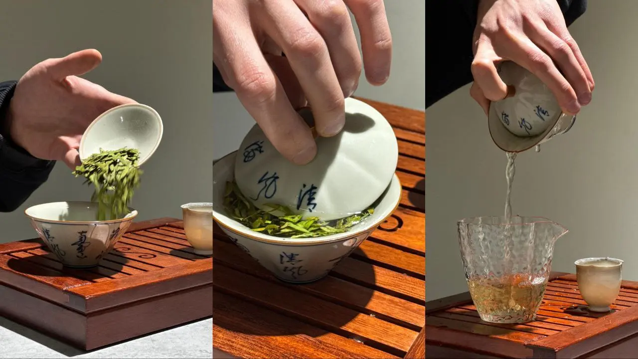 - Что понадобится: гайвань или маленький чайник (100–150 мл), чахай («чаша справедливости»), пиалы.
